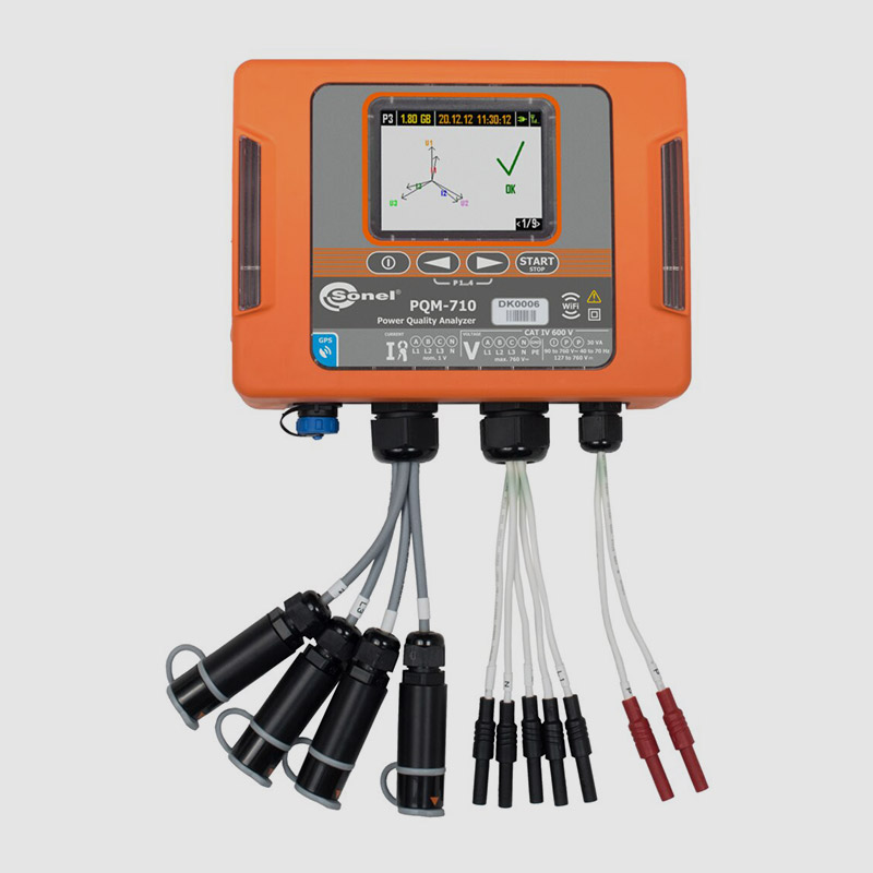 Der Analysator der Stromversorgungsqualität Sonel PQM-710 ist ein Gerät mit erweiterten Möglichkeiten der Fernanalyse in der A-Klasse. Sonel PQM-710 stützt sich auf fortgeschrittene technische Lösungen und ermöglicht die Durchführung von vielseitigen Messungen, Analysen und Aufzeichnungen der Parameter von Elektronetzen 50/60 Hz sowie der Qualität der Elektroenergie Netzqualität in Übereinstimmung mit der europäischen Norm EN 50160.