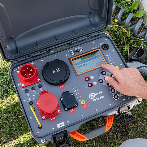 EVSE-100 ermöglicht eine schnelle und präzise Prüfung der Funktionalität von Ladestationen für Elektrofahrzeuge und ist ideal für Inbetriebnahmen, Wartung und Serviceeinsätze geeignet.