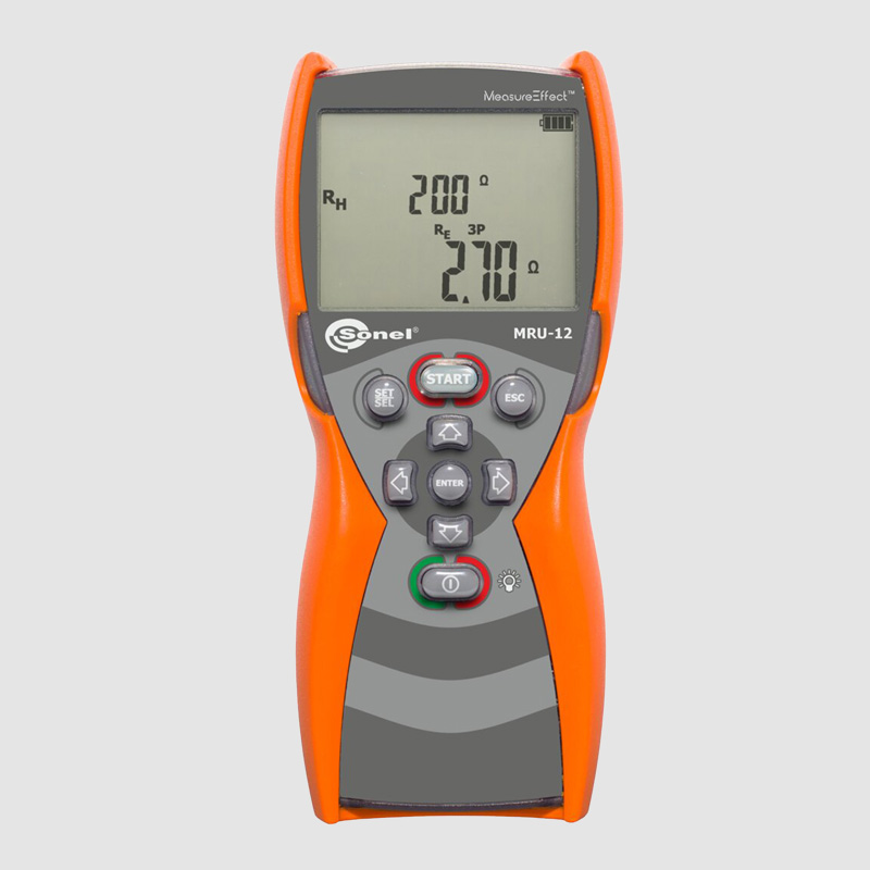 Das Erdungswiderstands- und spezifisches Erdwiderstandsmessgerät Sonel MRU-12 ist ein einfaches Messgerät, mit dem die Erdung unter der technischen Methode (3-polig und 4-Leiter) und der spezifische Erdwiderstand nach der Wenner- und Schlumberger-Methode gemessen werden kann. Das Gerät ist einfach zu bedienen, störungsresistent und hochpräzise.